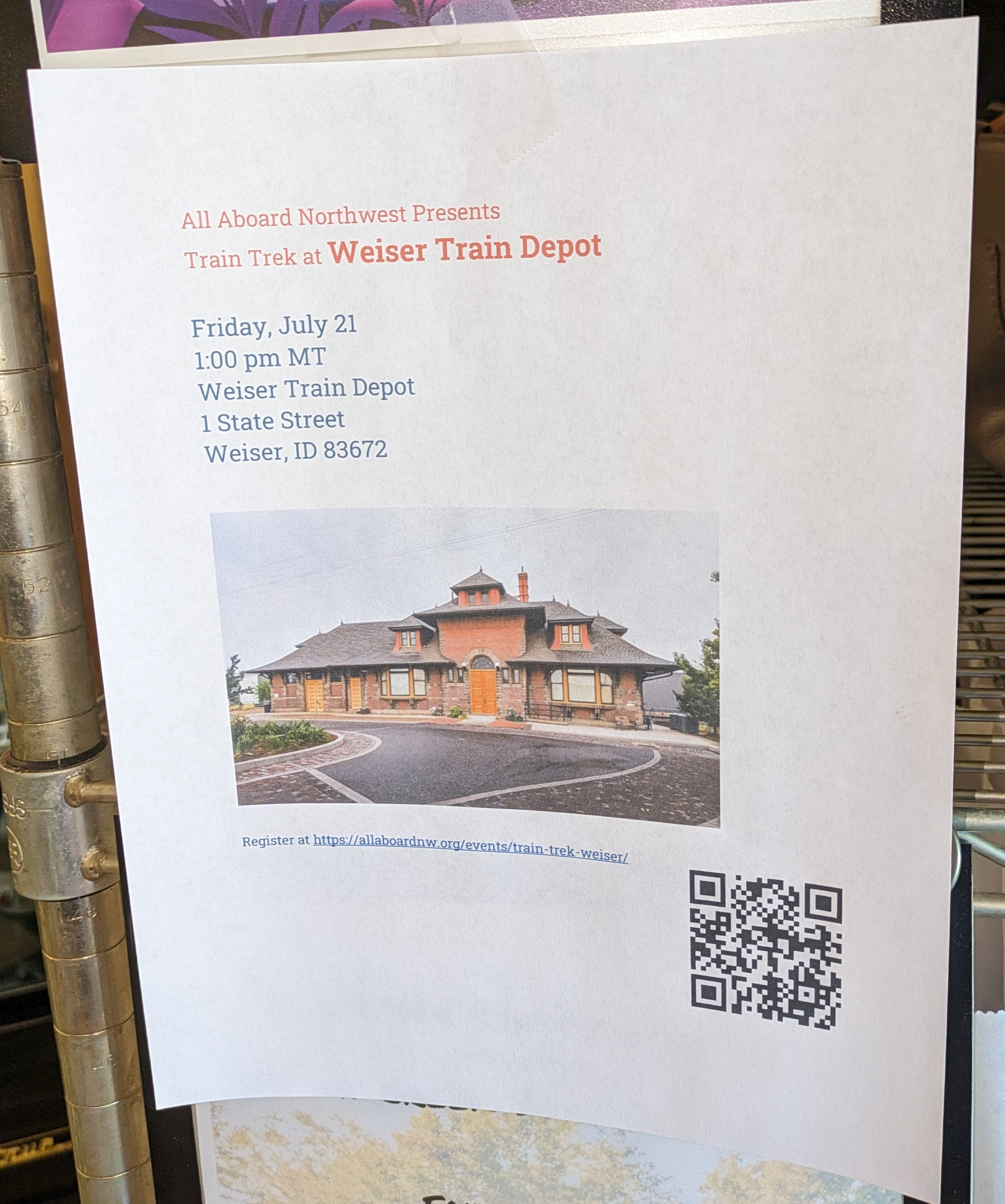 Hosted by the nonprofit Weiser Architectural Preservation Committee (WAPC), representatives of the passenger rail advocacy group All Aboard Northwest (AANW) and the Association of Oregon Rail and Transit Advocates (AORTA) are bringing their 2023 “Train Trek” to Weiser.…The presentation is intended to share the status of the groups’ efforts in helping to revive passenger rail service and, more specifically, what it would mean for Weiser.