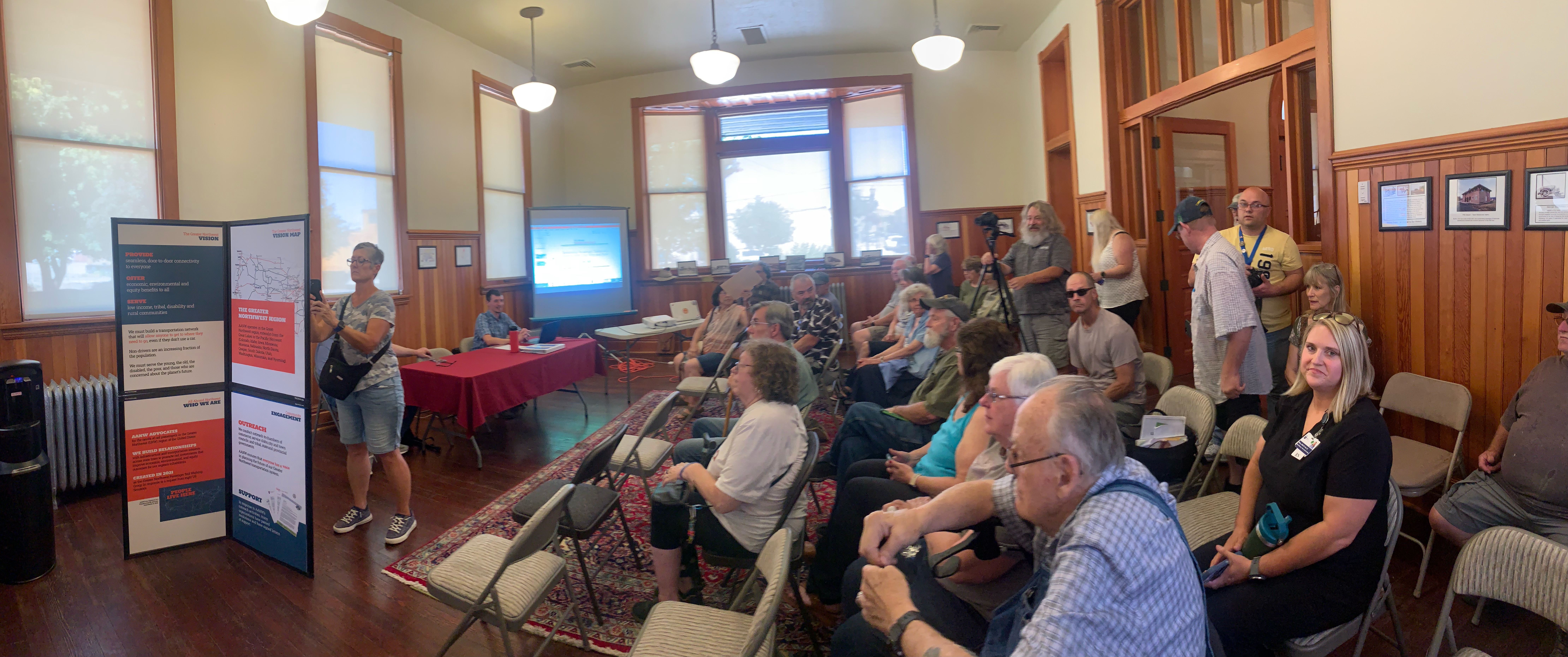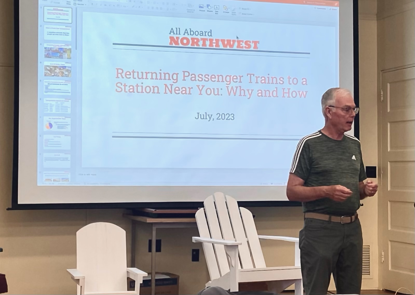 Last week’s All Aboard Northwest organization’s Train Trek meeting was presented to nearly 50 gathered residents on July 22, in the bottom floor of the Carnegie Art Center.